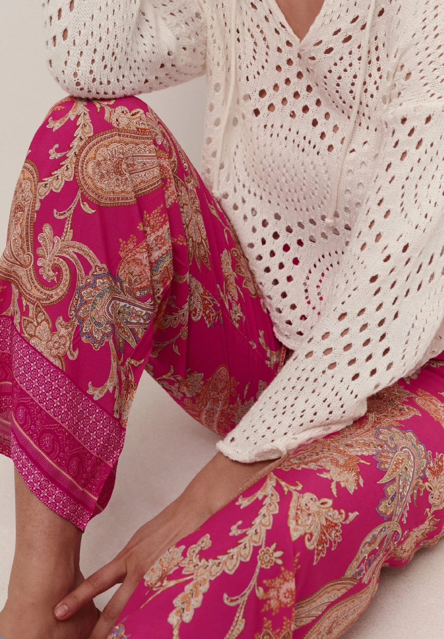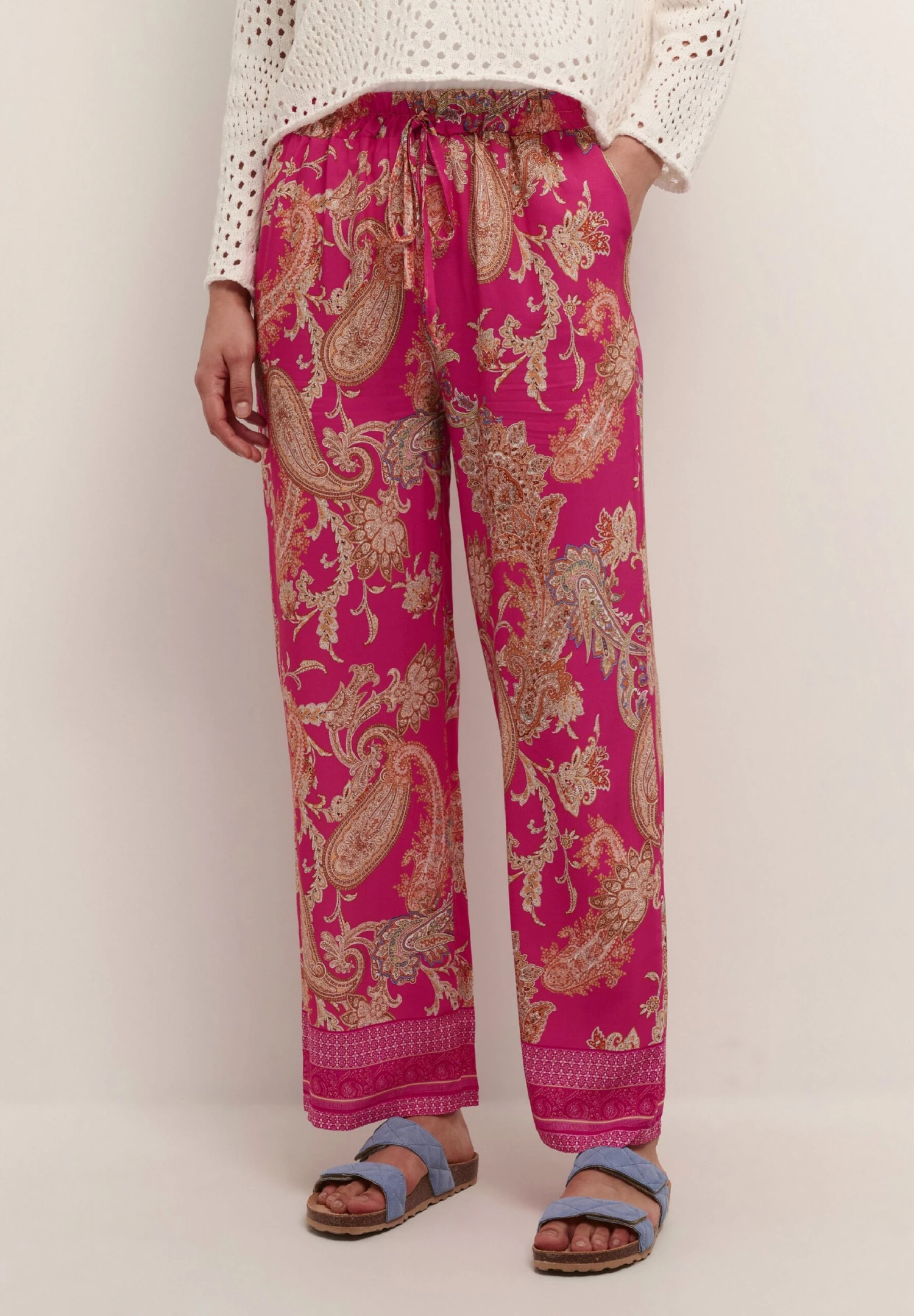 Cream CRALORA – Spodnie Materiałowe – Pink Golden Paisley