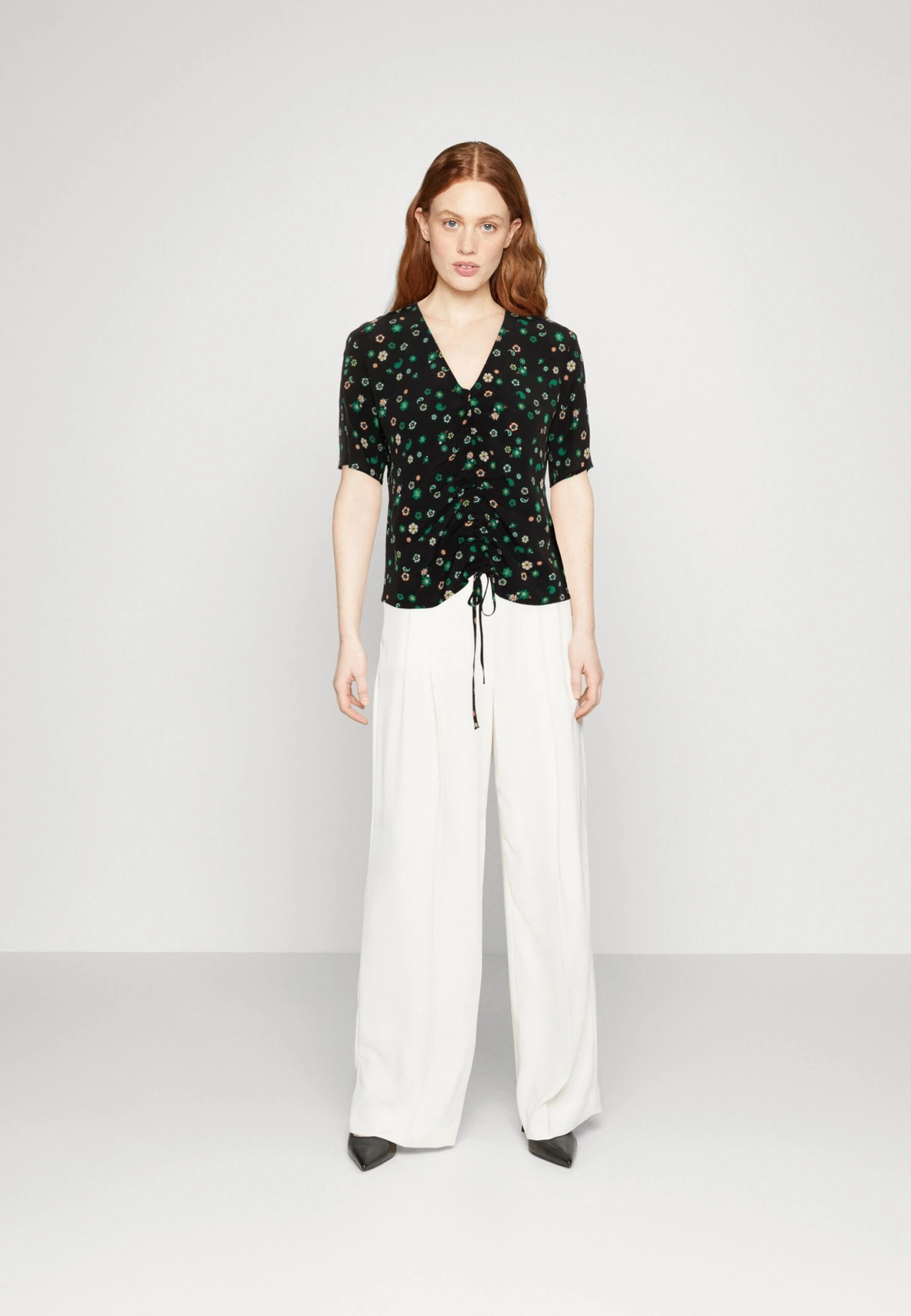 Marc O’Polo DENIM BLOUSE SHORT SLEEVE GATHEIRNG DETAIL – T-shirt Z Nadrukiem – Multi-coloured/black