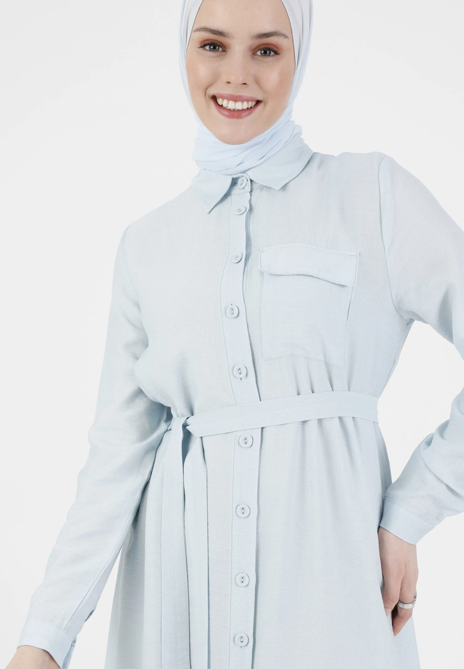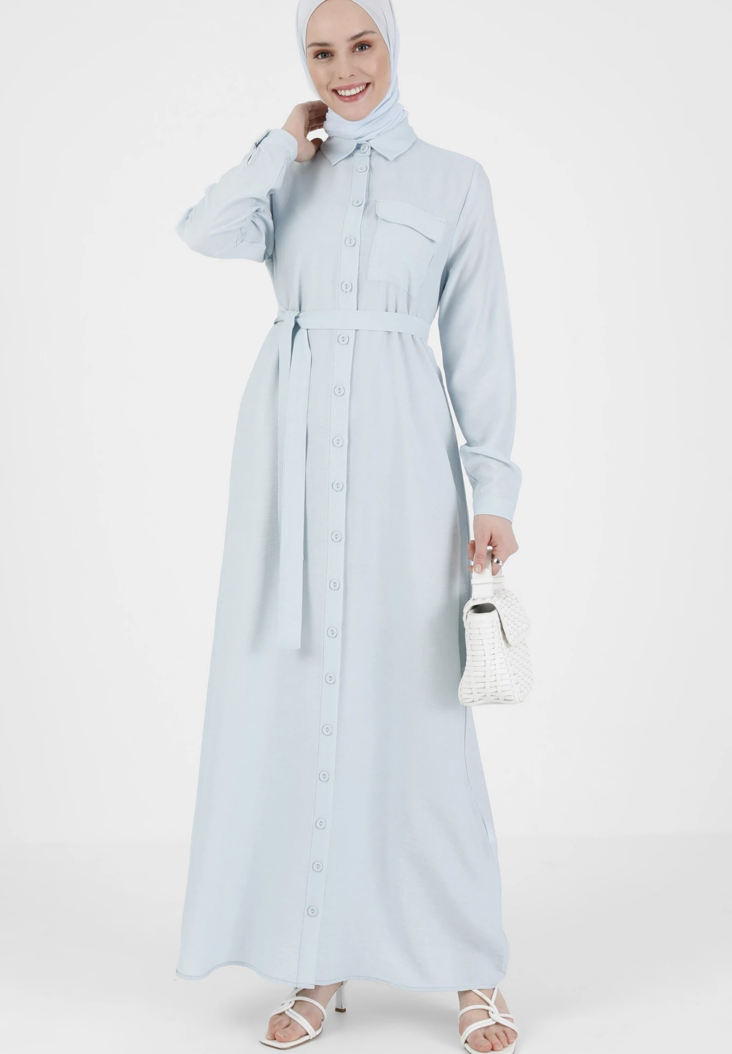 POINT COLLAR MODEST – Długa Sukienka – Light Blue