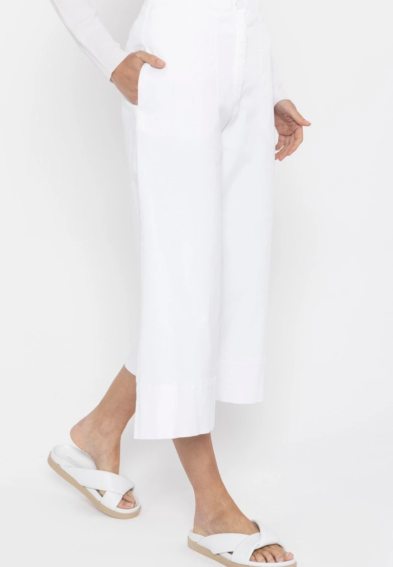 SZEROKIE TYPU PALAZZO – Spodnie Materiałowe – Biały